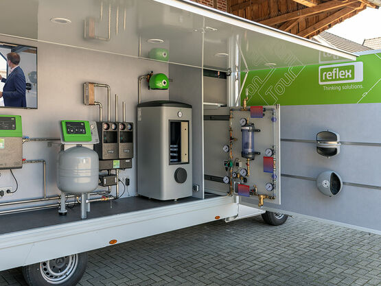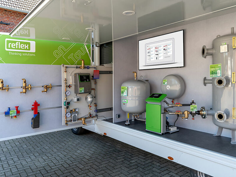Wissensvermittlung und Erlebnis steht im Mittelpunkt des Reflex on Tour CUBEs. Multifunktionales Equipment mit Testanlagenteilen sowie Versuchsstrecken bis hin zur virtuellen Reise durch die Heizungsanlage bietet der Reflex On Tour CUBE vielfältige Eindrücke über die Reflex Kompetenzfelder und Lösungsansätze.