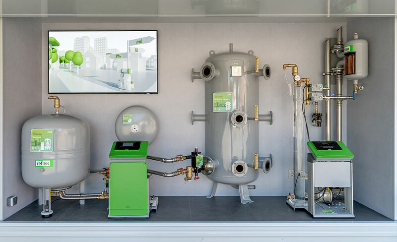 - Funktionsmodelle der Entgasungssysteme Servitec, Servitec S und Mini, der Druckhaltestationen Variomat und „neu“ Reflexomat XS sowie der Steuerungen Control Smart, Basic, Touch und Zubehör wie der neue Fillguard